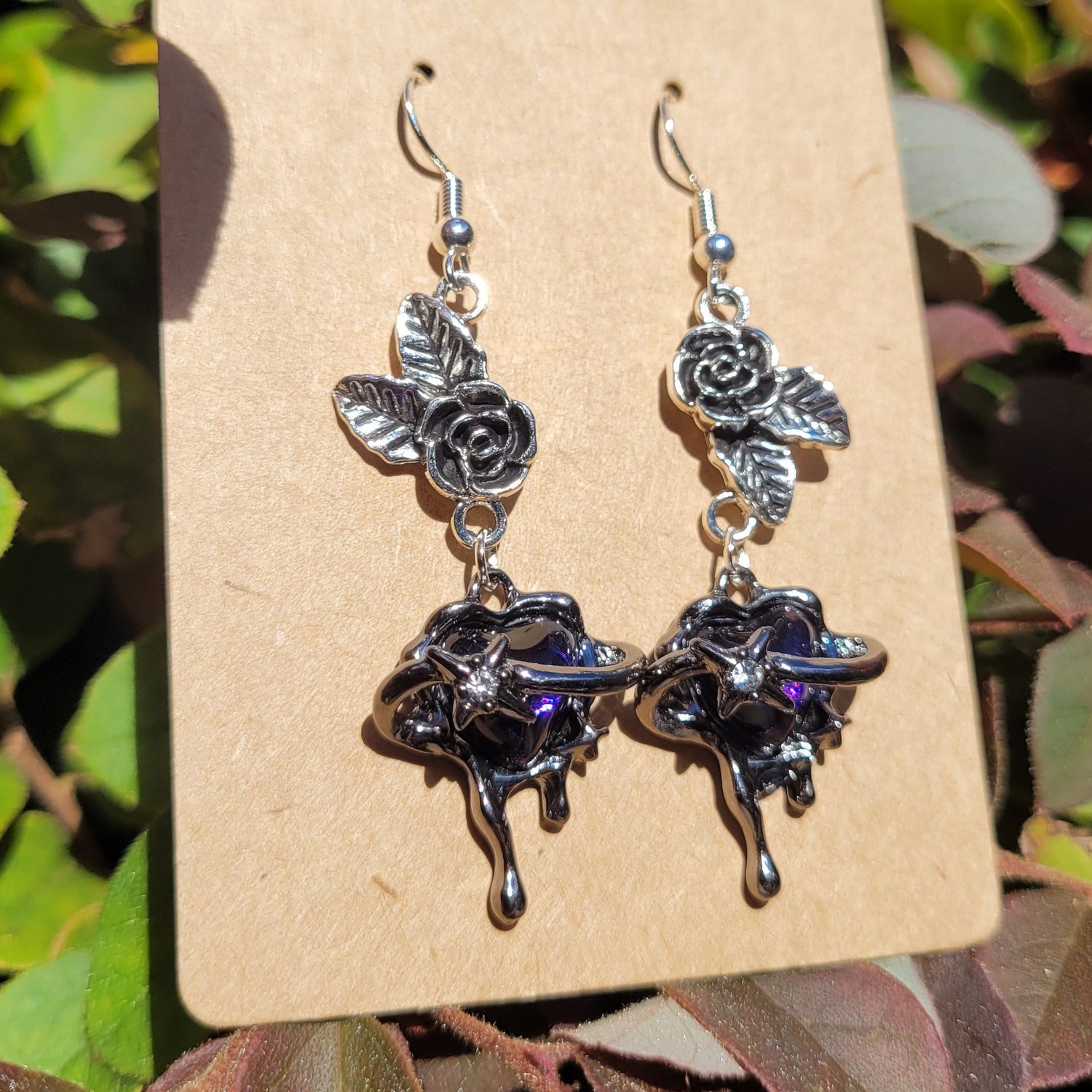 Iridescent Heart and Filigree Earrings